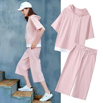 2026年夏新作脚見せショートパンツ カジュアル セットアップ ワイドパンツ レディース ゆったり 夏 日焼け止め セットアップ ジャージ 二点セット 可愛い ルームウェア