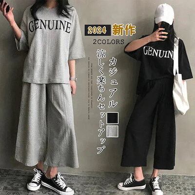 パジャマ セットアップ 大きめサイズ Tシャツ 【本日限定】シンプル ワイドパンツ 部屋着 半袖 セットアップ ルームウェア 夏 二点セット