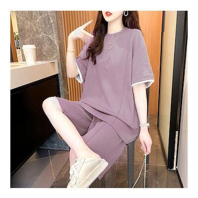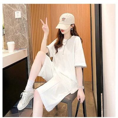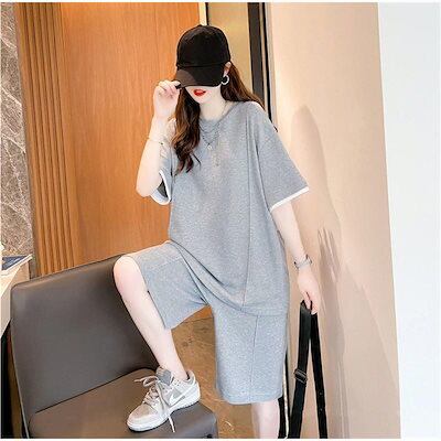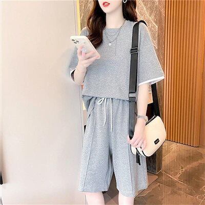 ジャージ Tシャツ ジム レディース ゆったり ランニング 部屋着 半袖 運動服 セットアップ スウェット スポーツウェア ハープパンツ ルームウェア 上下セット 夏 大人気