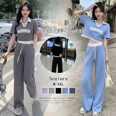 ワイドパンツ 可愛い カジュアル セット 二点セット 涼しく楽ちんセットアップ 大きめサイズ シンプル Tシャツ 2026 日焼け止め レディース 新作