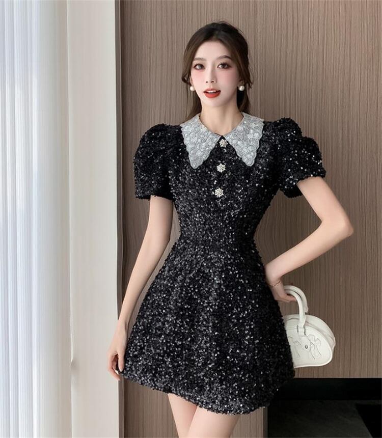 人形の襟 受け取って腰 ワンピース 半袖 洗練された ミニスカート レディース スリム