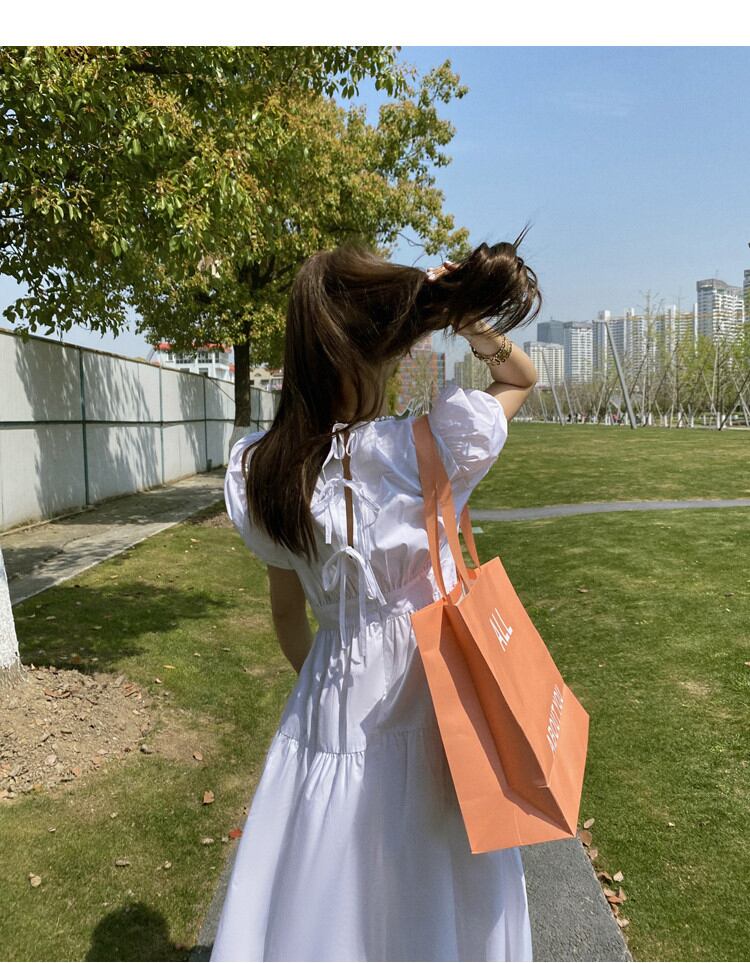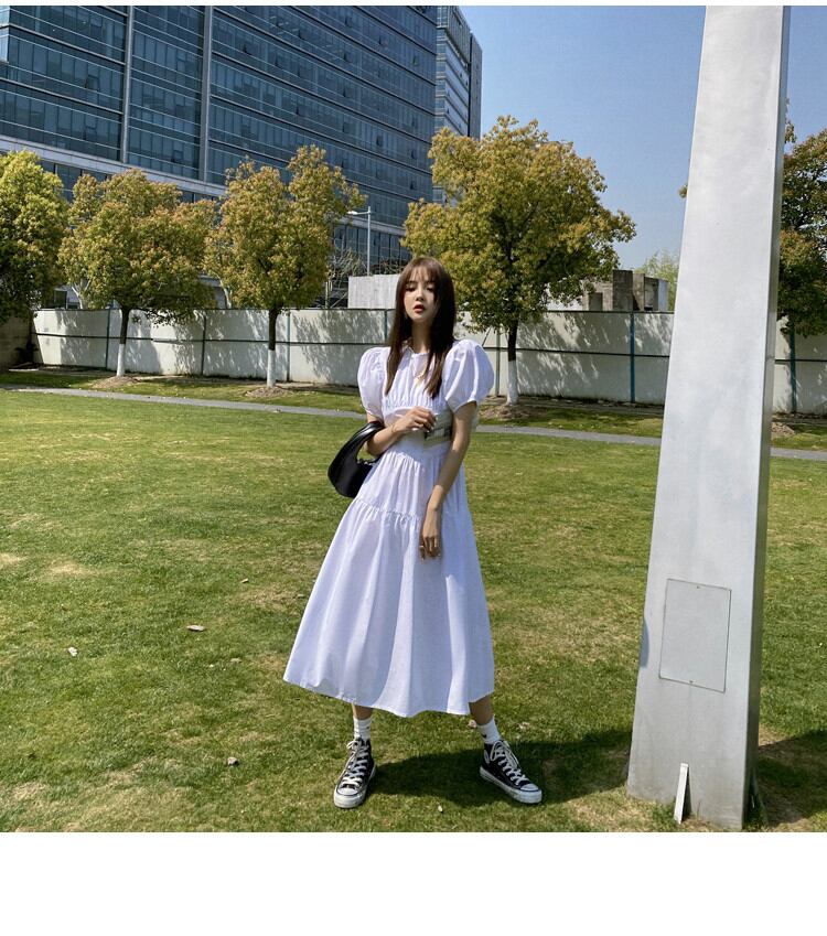 プリンセススタイル パフスリーブ ウエスト ワンピース 半袖 バンディング