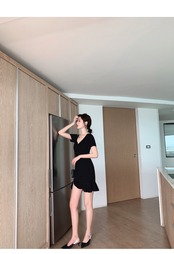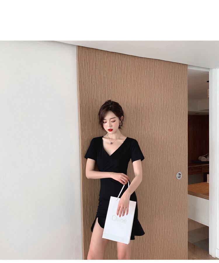 セクシー スプリット フィッシュテール バッグヒップ Vネック半袖 ワンピース 気質