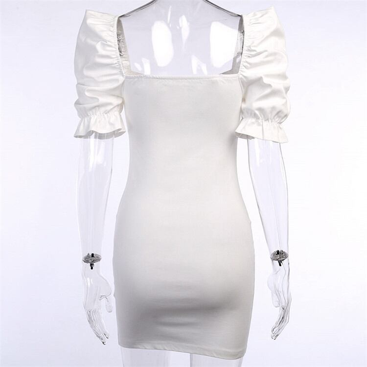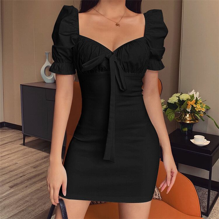 タイトスカート スリムフィット 蝶結び バンディング パフスリーブ 半袖 ワンピース