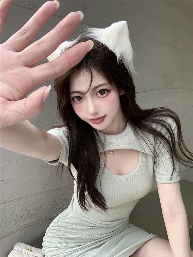 韓国ファッションセクシー 気質 透かし彫り 半袖 タイト スリム ミニ バッグヒップ ワンピース
