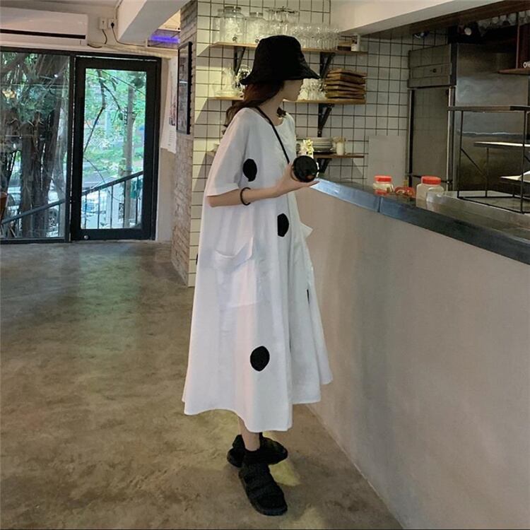 韓国ファッション 婦人服 sweet系 大きいサイズ ドット ゆったりする 半袖 ワンピース 学生