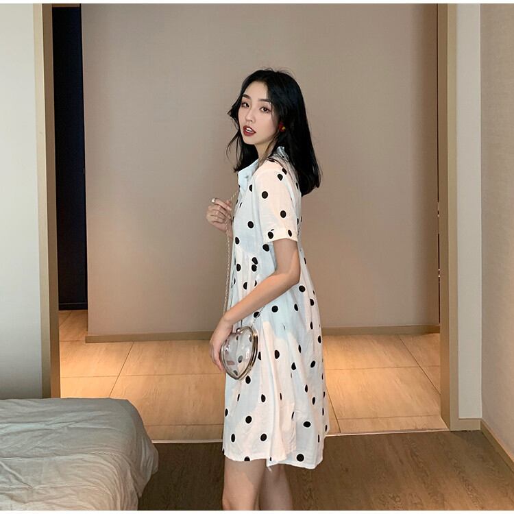 クリエイティブ 半袖 sweet系 気質 レトロ 怠惰な風 ドット スタンドカラー ハイウエスト