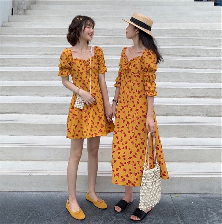 ビーチワンビース お出かけ 半袖 花柄ワンピ 短いスタイル スリム カジュアル