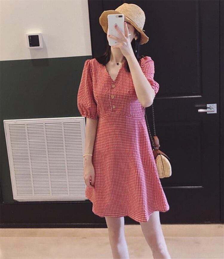 オシャレ度UP スリム 閨蜜の装い Vネック 半袖 ワンピース 短いスタイル sweet系 可愛い 気質 百掛けMKUIHT25126147a