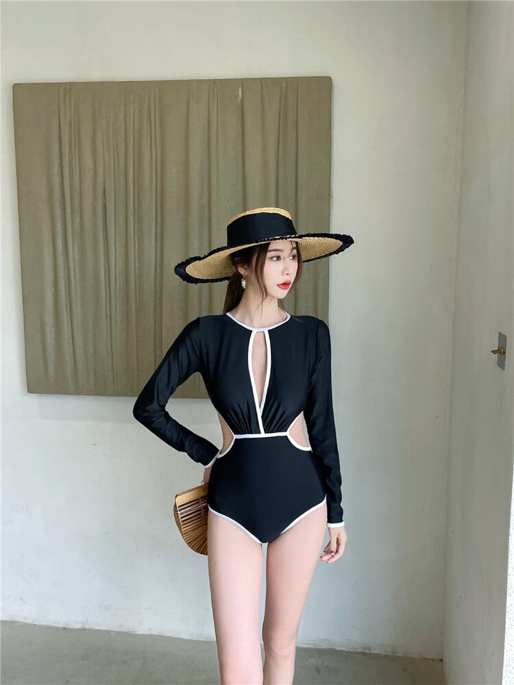 快適である 水着 カジュアル オシャレ オープンウエスト 2022 新作 長袖 黒