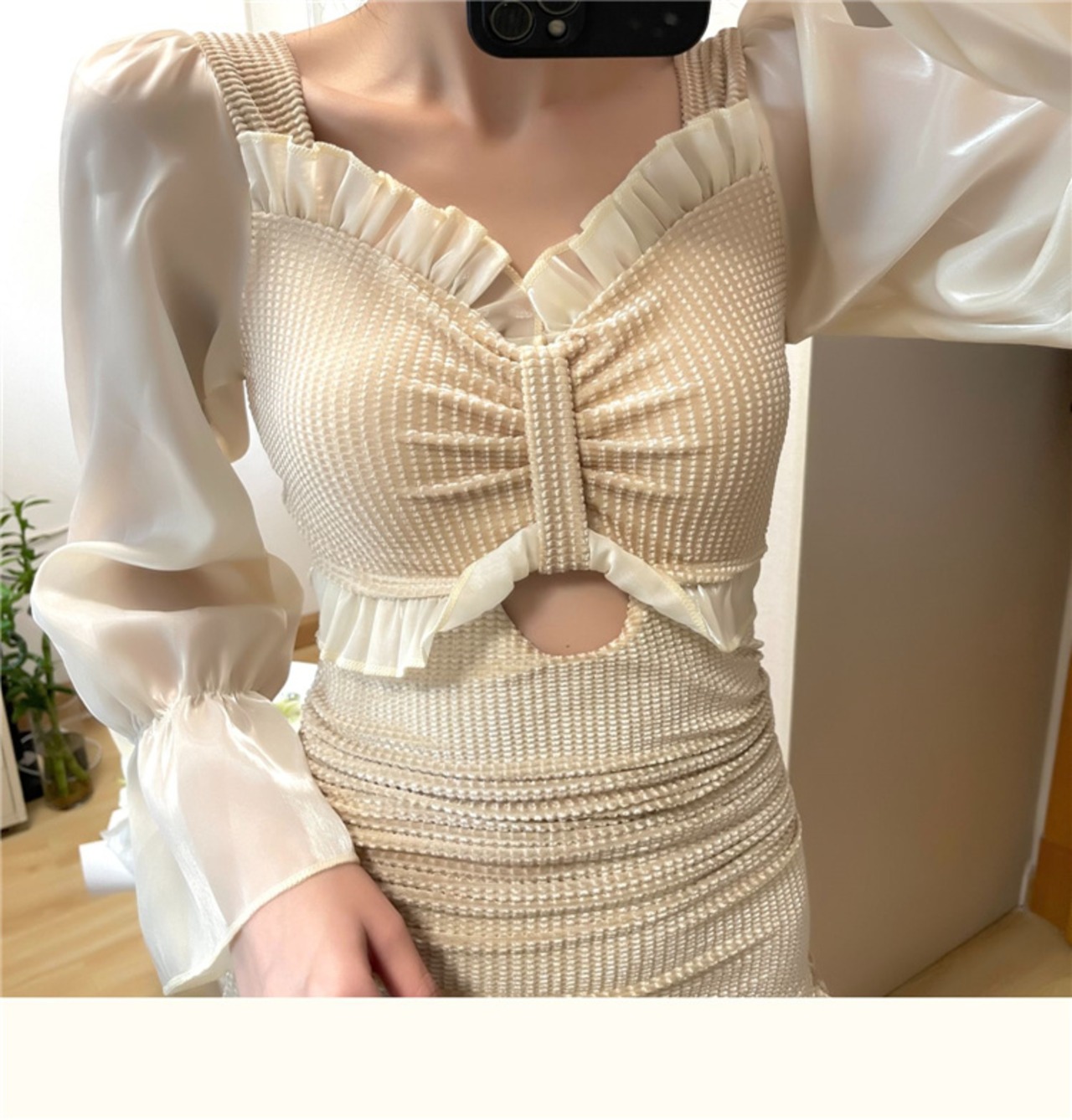激安セール 2022新作 スリム 長袖 バンディング 背透けて Vネック 水着 トレンド 夏