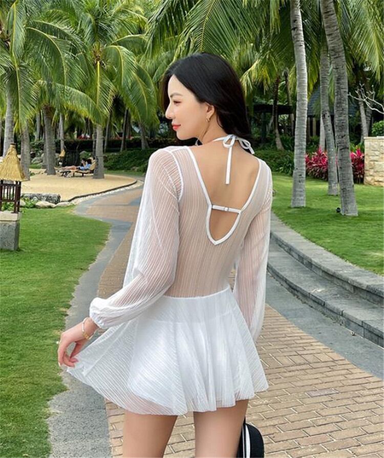 大人気 保守的 スリム 温泉 新品 レディース ワンピース水着 小さい新鮮な 長袖★★ 水着 レディース おしゃれ ビーチ ビキニ リゾート プール 体型カバー スリム 可愛い インスタ映え セパレート 露出控えめ 盛れるハイウエスト 韓国 日焼け対策 競泳 スイムウェア日焼け防止 スタイルアップ 着痩せ | OPEN-korea