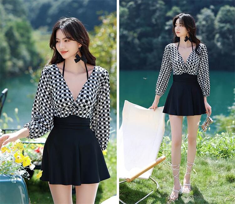 人目を引く美人 ワンピース水着 長袖 スリム ハイウエスト 水着 小さい新鮮な★★ 水着 レディース おしゃれ ビーチ ビキニ リゾート プール 体型カバー スリム 可愛い インスタ映え セパレート 露出控えめ 盛れるハイウエスト 韓国 日焼け対策 競泳 スイムウェア日焼け防止 スタイルアップ 着痩せ | OPEN-korea