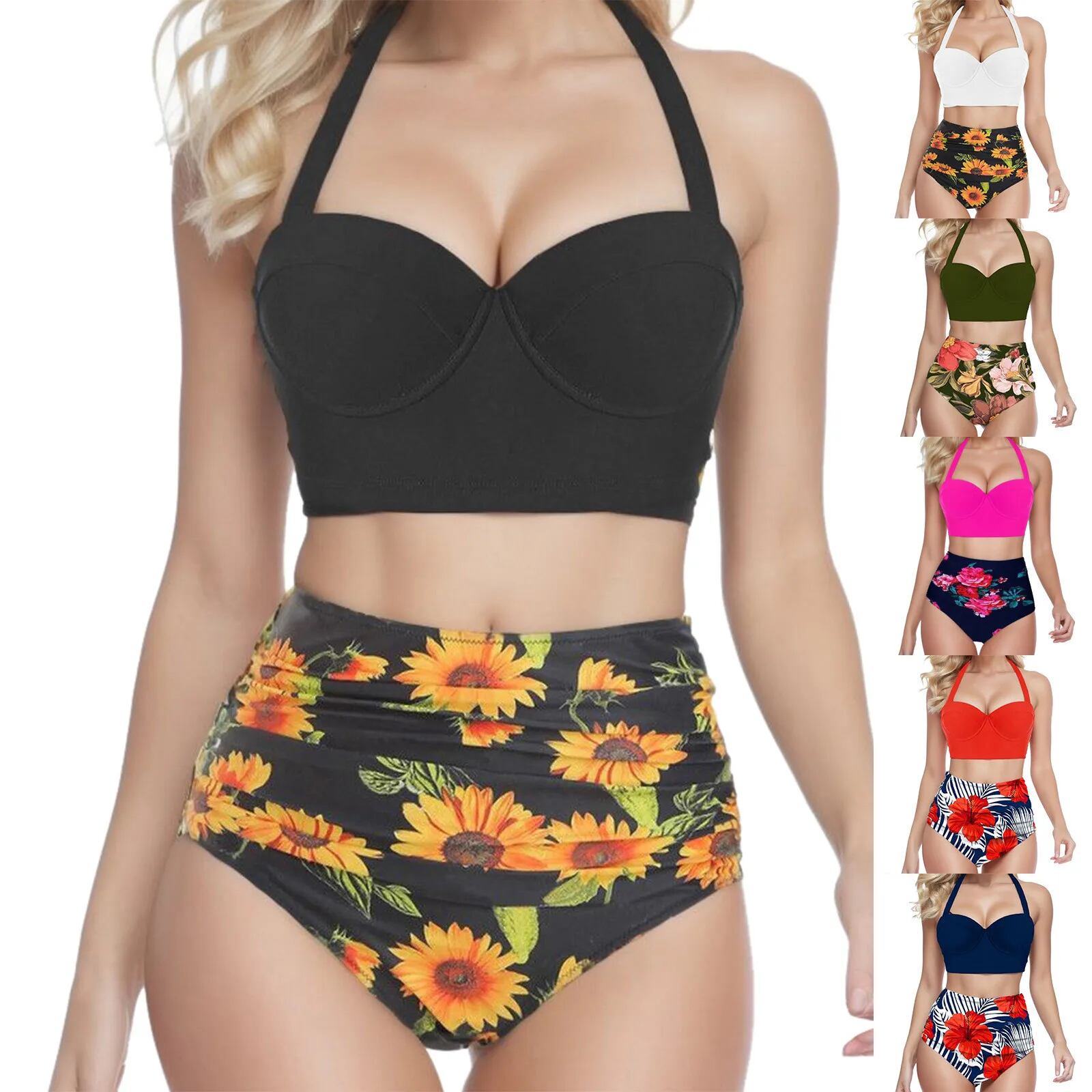 女性のための花柄のビキニ,ビーチとプールのためのセクシーな水着,ハイウエストのタンキニ ビキニ Tシャツ T240619000911_01