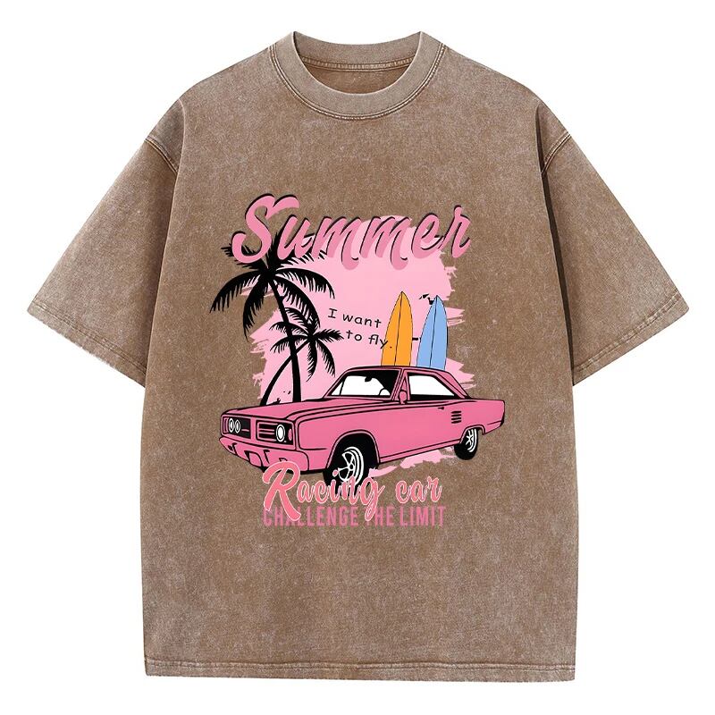 レディースコットンウォッシュシャツ,サマーレースカーチャレンジ,制限プリントTシャツ,特大トップス,ラウンドネック服,ストリートファッション,カジュアル ビキニ Tシャツ T240619001737_02