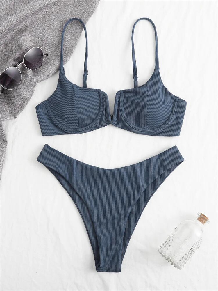 女性用ひも付きビキニ,無地のVネック水着,ビーチウェアセット,女性用セクシー水着2022 ビキニ Tシャツ T240619002319_04