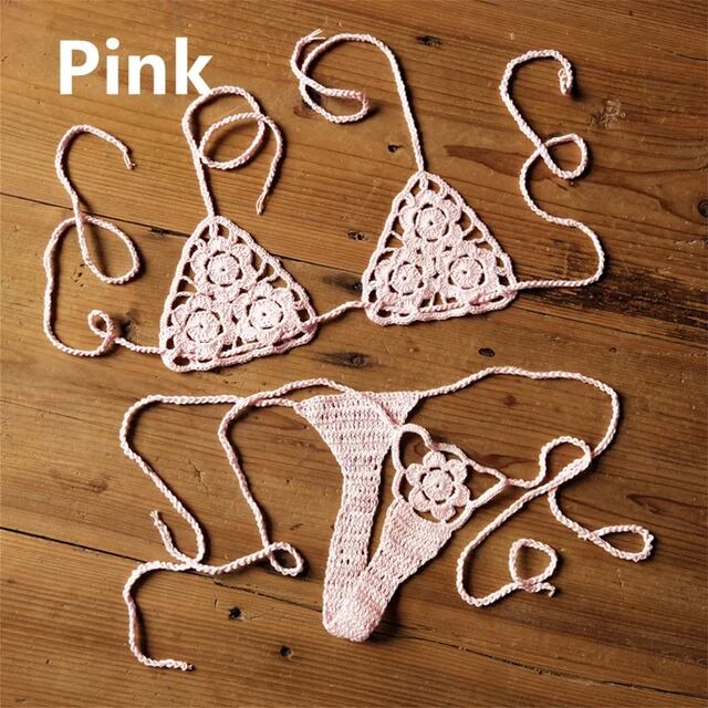 女性のためのかぎ針編みのビキニセット,ひも,ビーチの水着,セクシーな水着,ブラ ビキニ Tシャツ T240619002327_04