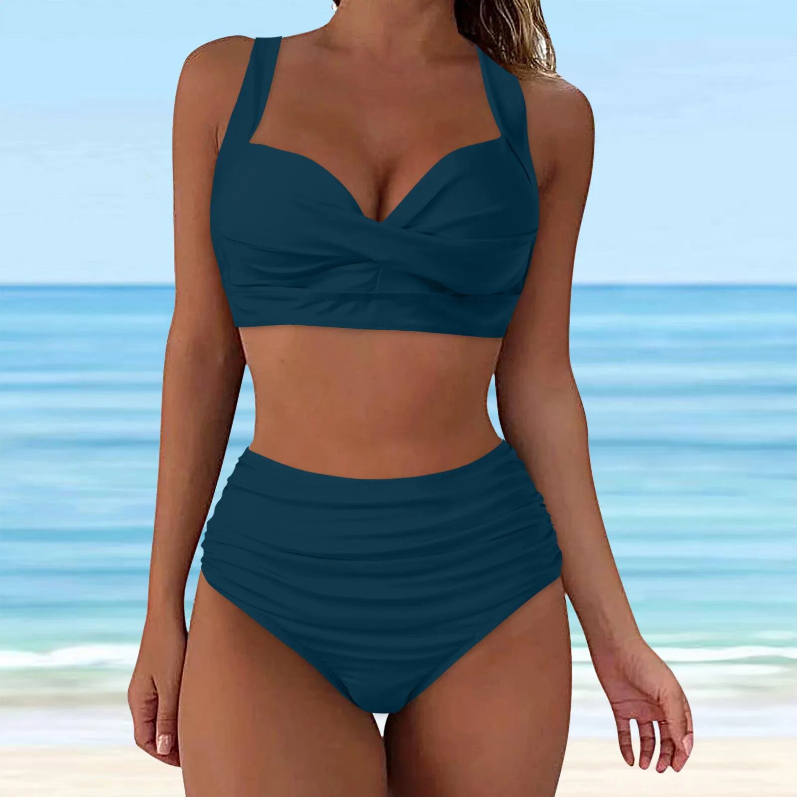 女性用ホルターネックビキニセット,ハイウエスト,セクシーなプッシュアップ,ヴィンテージスタイルの水着,レトロ,トライアングル,2個 ビキニ Tシャツ T240619002350_10 | OPEN-korea