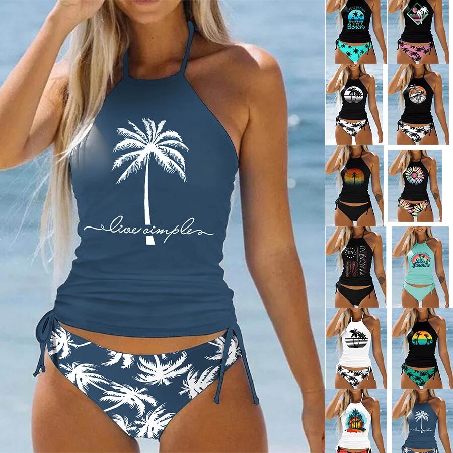 女性用3Dココナッツツリープリントビキニセット,高弾性水着,レースアップ,セクシー,ビーチ,夏,新品,S 6XL, 2個 ビキニ Tシャツ T240619003446_12