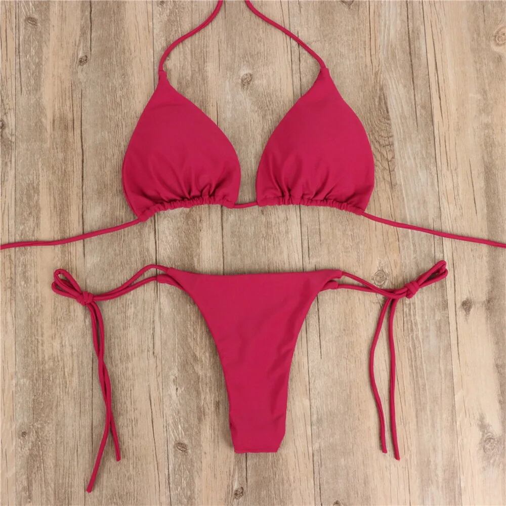 女性のための超弾性ひもビキニセット,セクシーな無地の水着,包帯スタイルの水着,ブラジルのビーチウェア2023 ビキニ Tシャツ T240619004730_04