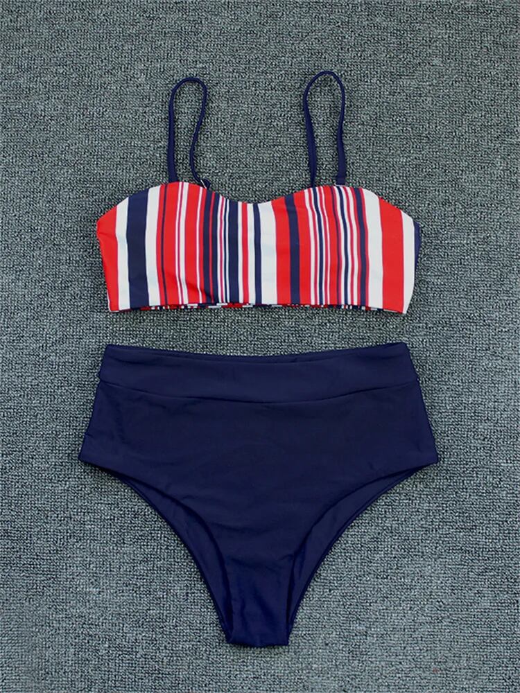 女性用ビキニセット,ストライプ水着,ハイウエスト水着,ツーピース水着,ビーチウェア,女性用ビキニ2023 ビキニ Tシャツ T240619004908_02