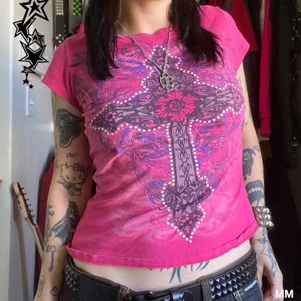 女性用半袖Tシャツ,スカルプリントのグランジクロップトップ,美的モール,ゴスガール,レトロなTシャツ,y2k,インディーグラフィックプリント,2000s Tシャツ シャツ T240619152603_13 | OPEN-korea