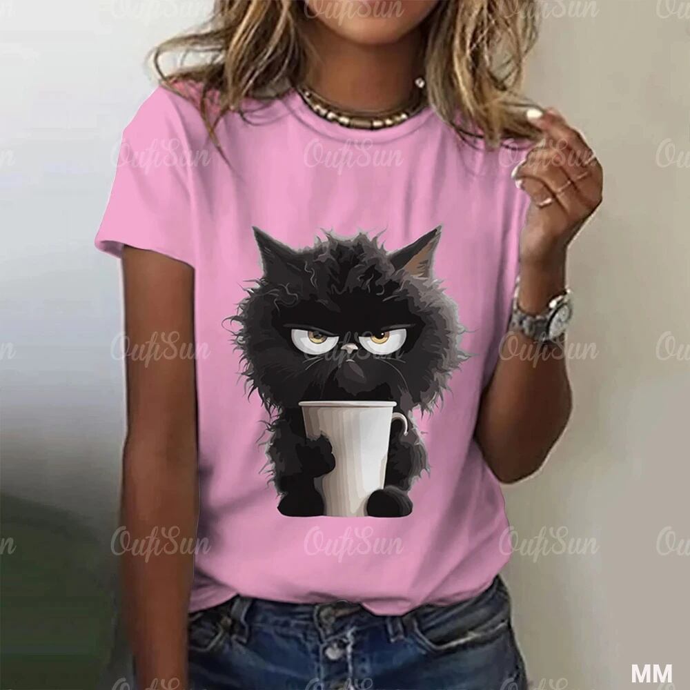女性のカジュアルな半袖Tシャツ,3Dキャットプリントのストリートウェア,クルーネック,特大の婦人服,サマーファッション Tシャツ シャツ T240619163931_08