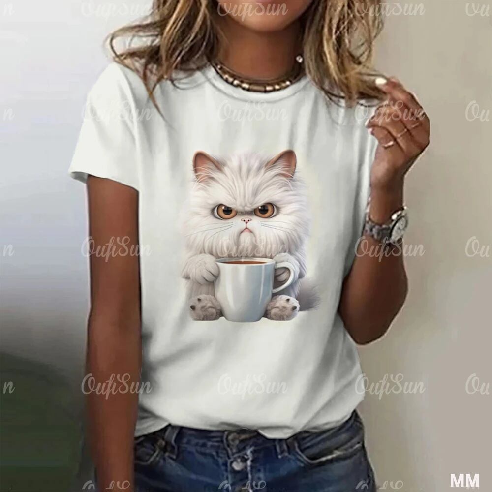 女性のカジュアルな半袖Tシャツ,3Dキャットプリントのストリートウェア,クルーネック,特大の婦人服,サマーファッション Tシャツ シャツ T240619163931_28