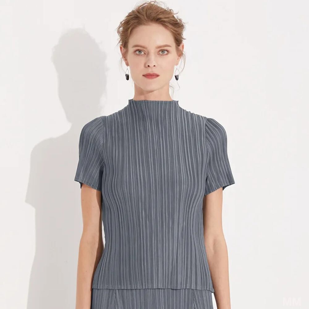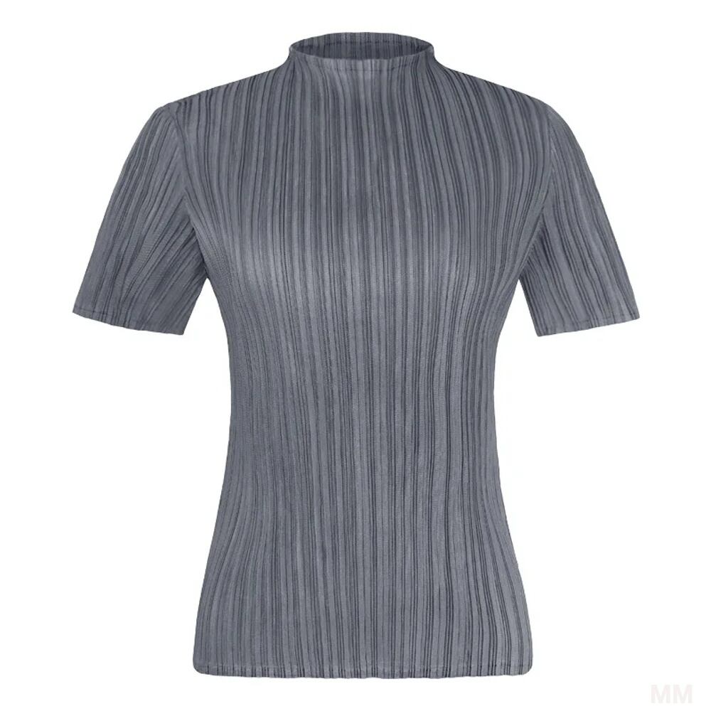 女性用半袖プリーツベーシックトップス、カジュアル単色快適なTシャツ、miyakeトップス、夏、2022 Tシャツ シャツ T240619164234_03