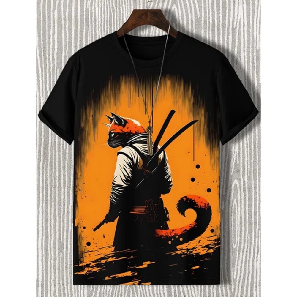 アニメの猫のTシャツ,半袖,3Dプリントの漫画,紳士服,カジュアルなヴィンテージスタイル,毎日,夏のファッション ボトム ボトムス ズボン T240619134724_01