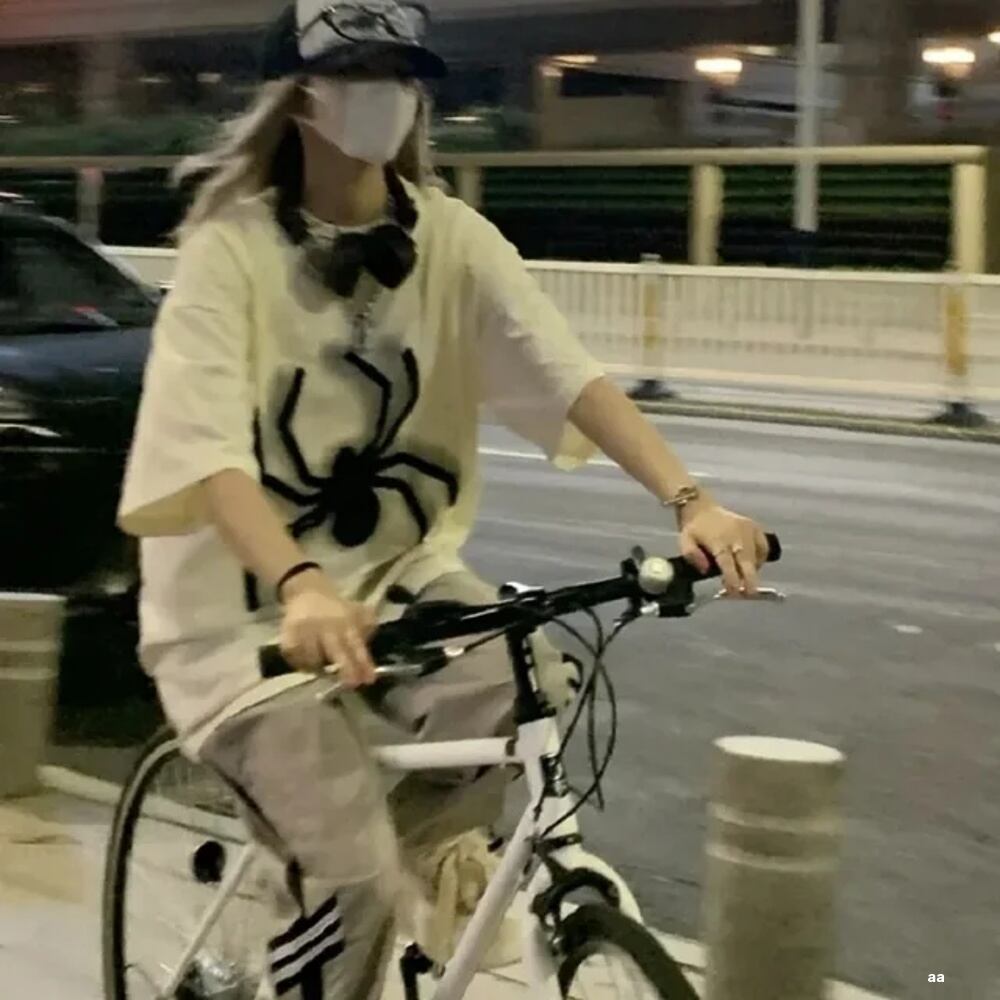 スパイダープリントの半袖Tシャツ,レトロなカット,女性用,サマートップ,ストリートウェア,カップル用クロップトップ,ゴシック原宿 ボトム ボトムス ズボン T240619152539_02 | OPEN-korea