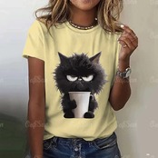 女性のカジュアルな半袖Tシャツ,3Dキャットプリントのストリートウェア,クルーネック,特大の婦人服,サマーファッション ボトム ボトムス ズボン T240619163931_09 | OPEN-korea
