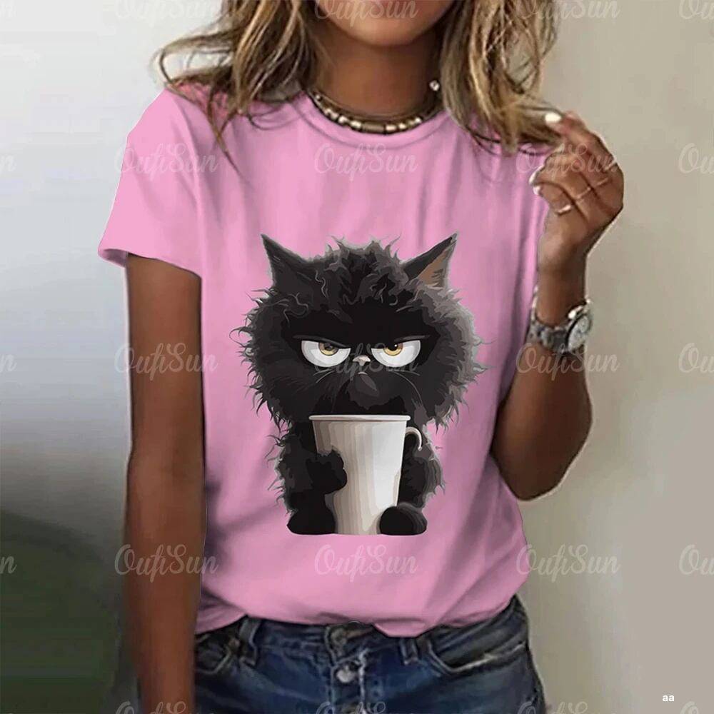 女性のカジュアルな半袖Tシャツ,3Dキャットプリントのストリートウェア,クルーネック,特大の婦人服,サマーファッション ボトム ボトムス ズボン T240619163931_25 | OPEN-korea