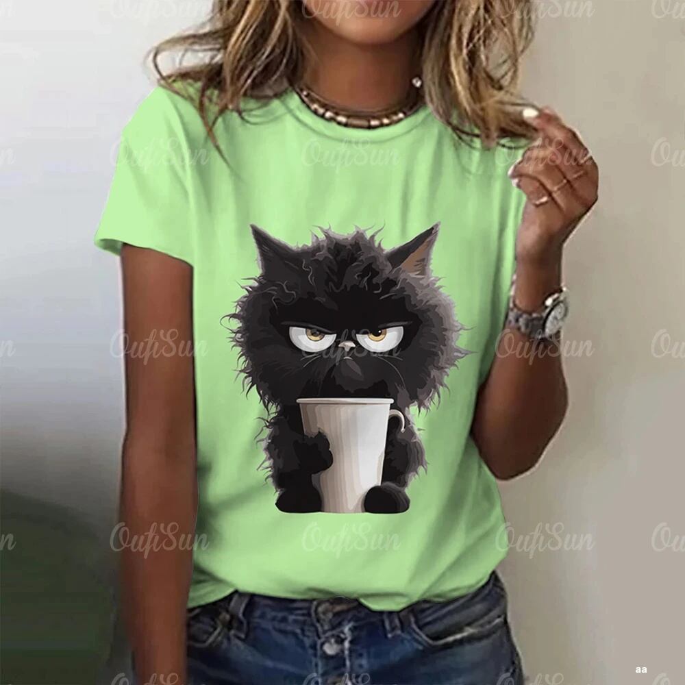 女性のカジュアルな半袖Tシャツ,3Dキャットプリントのストリートウェア,クルーネック,特大の婦人服,サマーファッション ボトム ボトムス ズボン T240619163931_26 | OPEN-korea