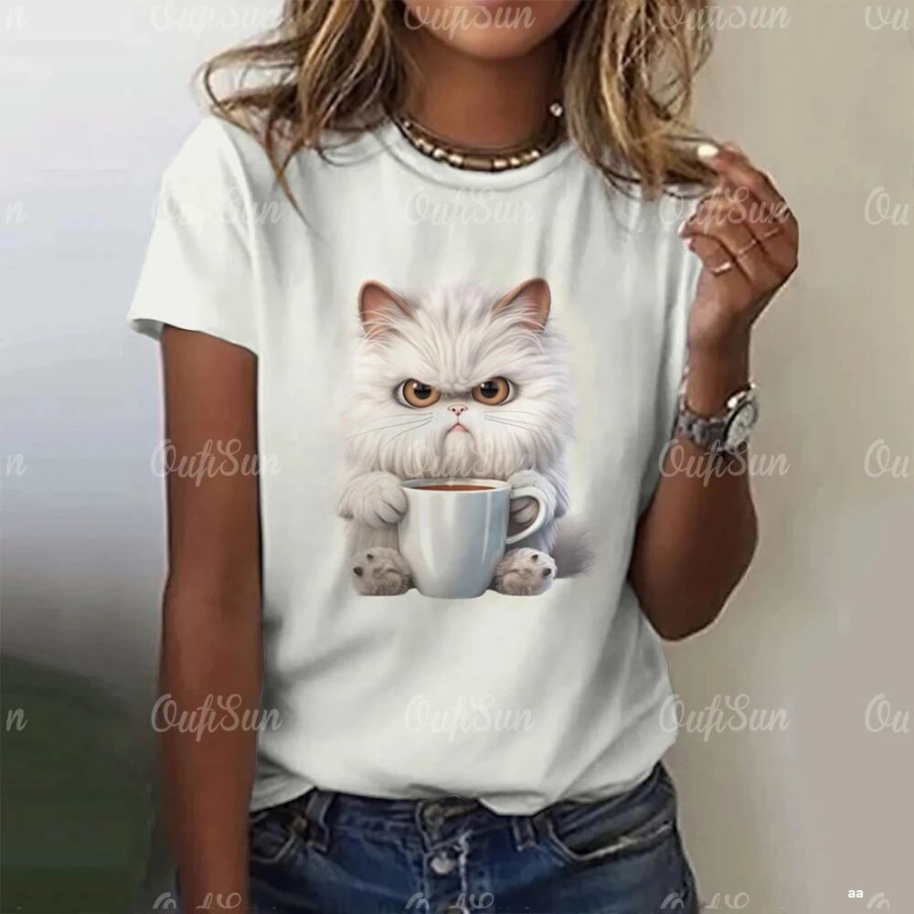 女性のカジュアルな半袖Tシャツ,3Dキャットプリントのストリートウェア,クルーネック,特大の婦人服,サマーファッション ボトム ボトムス ズボン T240619163931_28 | OPEN-korea
