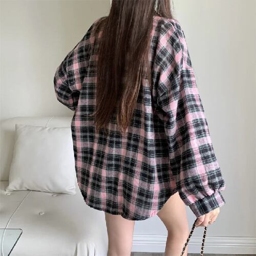 女性の特大のタータンシャツ,長袖,collaredボタンアップ,チェックシャツ,フランネルジャケット,グランジウェア,10代の女の子,春,夏
