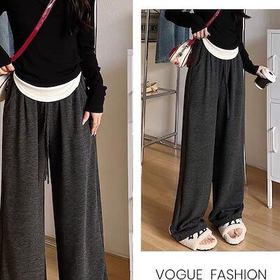 ワイドパンツ 秋のファンキーポケットストレートレッグドローストリングハイウエストワイドレッグパンツ1