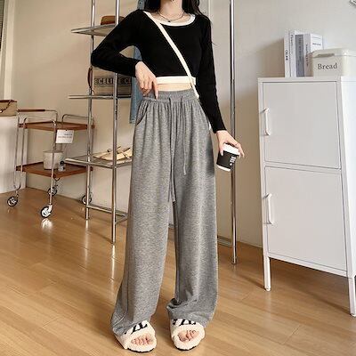 ワイドパンツ 秋のファンキーポケットストレートレッグドローストリングハイウエストワイドレッグパンツ8