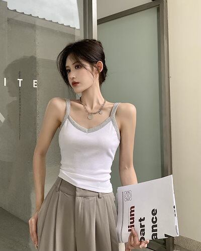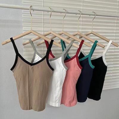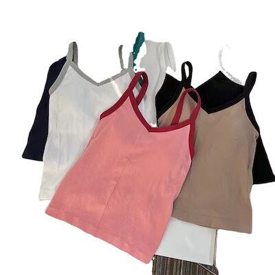 カップ付きインナー 新作キャミソールベストVネックノースリーブファッショントップス