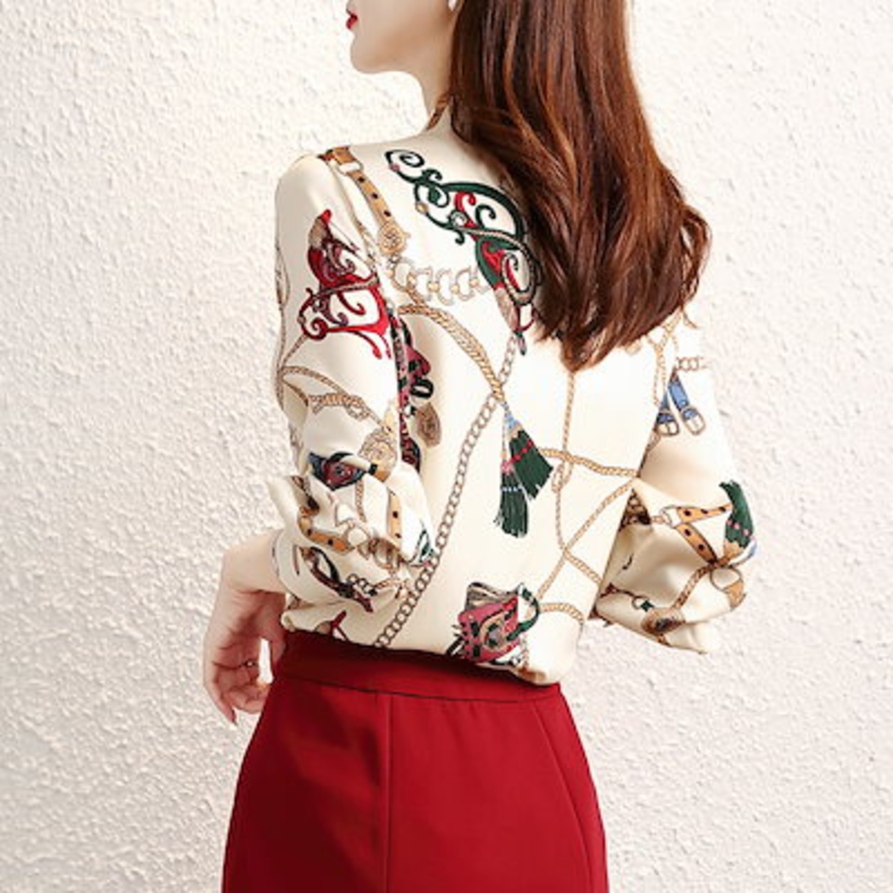 シャツ OL シフォンシャツ秋の長袖ブラウスファッションルーズ気質ブラウス ブラウス7