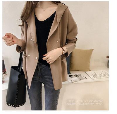 トレンチコート 初秋の新作2024フード付きウィンドブレーカーレディースミディアム丈カジュアル長袖カーディガンジャケット潮34