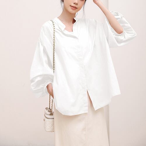 初回送料無料 新作レディースファッション カジュアル シンプル ランタン長袖 シャツ トップス