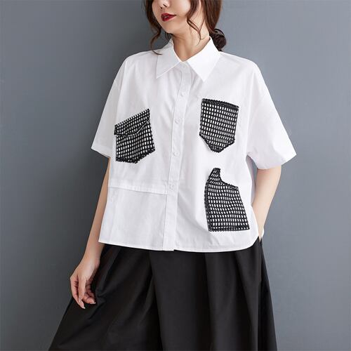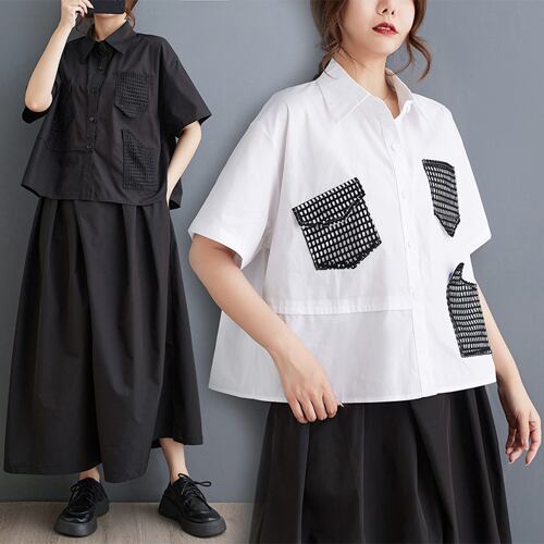 初回送料無料 新作レディースファッション カジュアル シンプル パッチワーク シャツ トップス