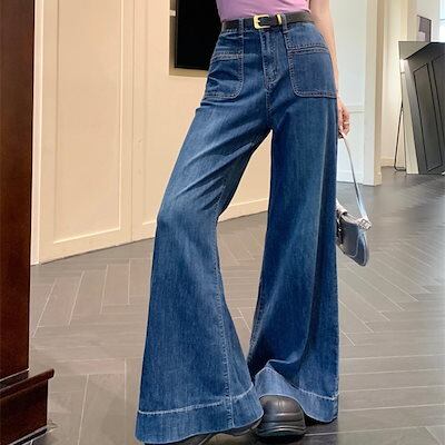 2024春夏パンツ デニム ジーンズ ロング丈 ワイドレッグ ハイウエスト 美脚効果 脚長効果 細見え 夏 水色 青 おしゃれ かわいい 韓国ファッション レディース お出かけ | OPEN-korea