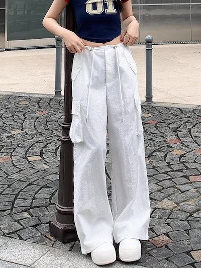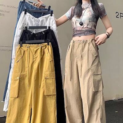 2024夏 韓国パンツ ロング丈 サイドポケット ワイド ストレート ハイウエスト 美脚効果 脚長効果 細見え 夏 白 黒 黄色 茶色 青 おしゃれ かわいい 韓国ファッション レディース お出かけ | OPEN-korea