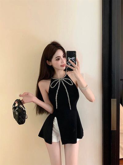 2024夏 韓国ワンピース ミニ丈 キャミソール ネック柄 ゆったり 夏 カラフル 韓国ファッション レディース おしゃれ かわいい ガーリー キュート 甘め カジュアル お出かけ | OPEN-korea