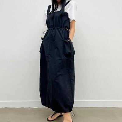 2024春夏セットアップ ジャンパースカート ジャンスカ ミモレ丈 スクエアネック ノースリーブ Aライン スリット バックオープン ゆったり 細見え 夏 黒 緑 おしゃれ かわいい 韓国ファッション | OPEN-korea