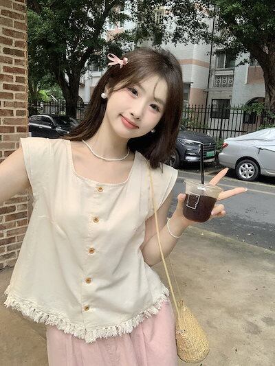 2024 春夏 甘い トップス Tシャツ ラウンドネック丈 休日 フレンチ 韓国 ブラウス ファッション系 タイト スリムフィット丈短め ショート レディース へそ出し 休日 おしゃれ T | OPEN-korea