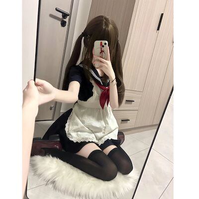 ハロウィン コスプレ チェックメイド服 ロリータ ネイビープリーツワンピース かわいい op コスプレエプロン メイド服/仮装 洋服