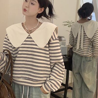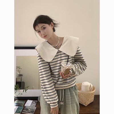 2024秋冬ファッションのパーカー レディース ストライプの 長袖シャツトップス Tシャツ ゆったりブラウス